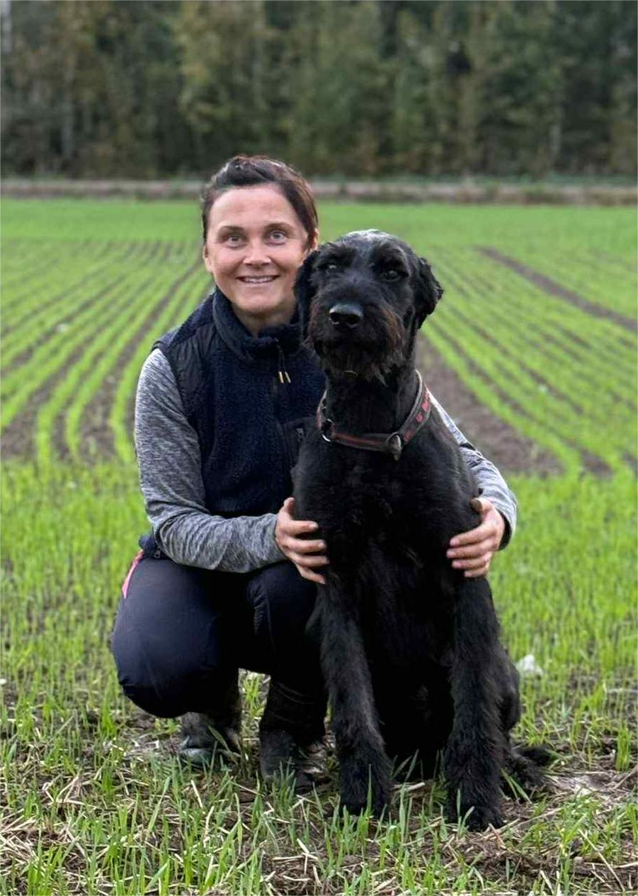 Minna Kannisto ja junioriluokan Ottopoika eli Jamalin Easter Pudding näyttelykehässä. Viimeksi Otto kävi lokakuussa 2023 Hämeenlinnan ryhmänäyttelyssä ja oli rodun paras pitkäkarvainen estrelanvuoristokoira. Kuva: Paula Heikkinen Lehkonen