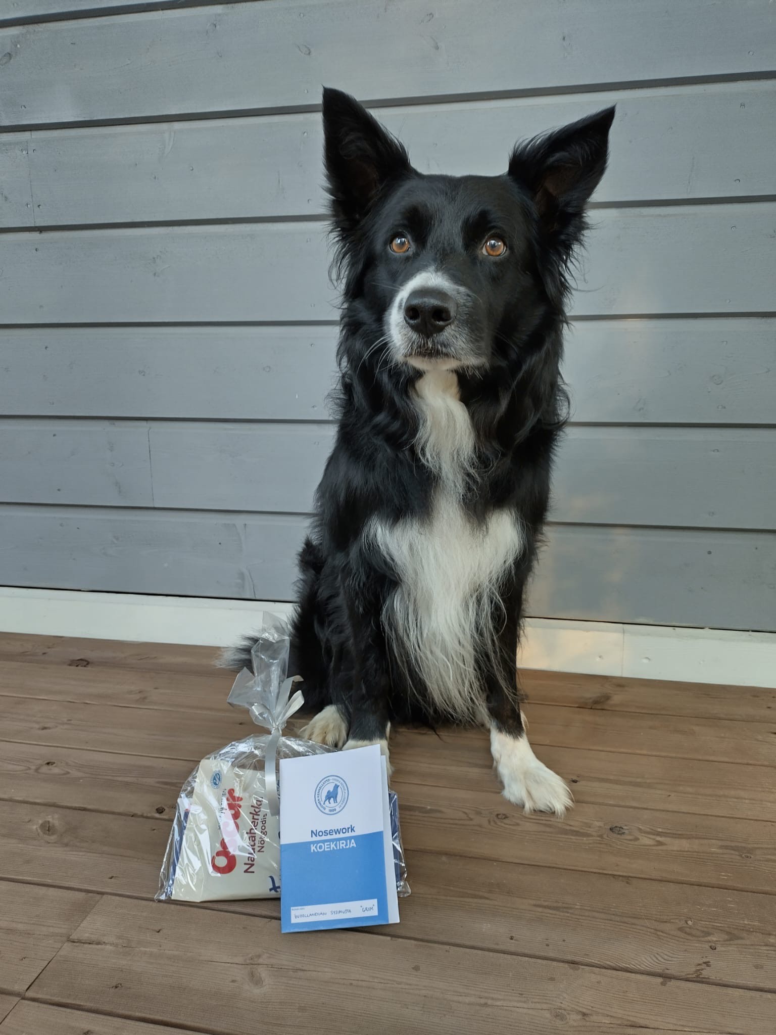 Marjo Saares ja bordercollie Woollandian Sysimusta eli Grim voittivat nose work -kokeen YEK1 L-luokan tuloksella 100/0 ja kisan nopeimmalla ajalla 10. syyskuuta Helsingissä.