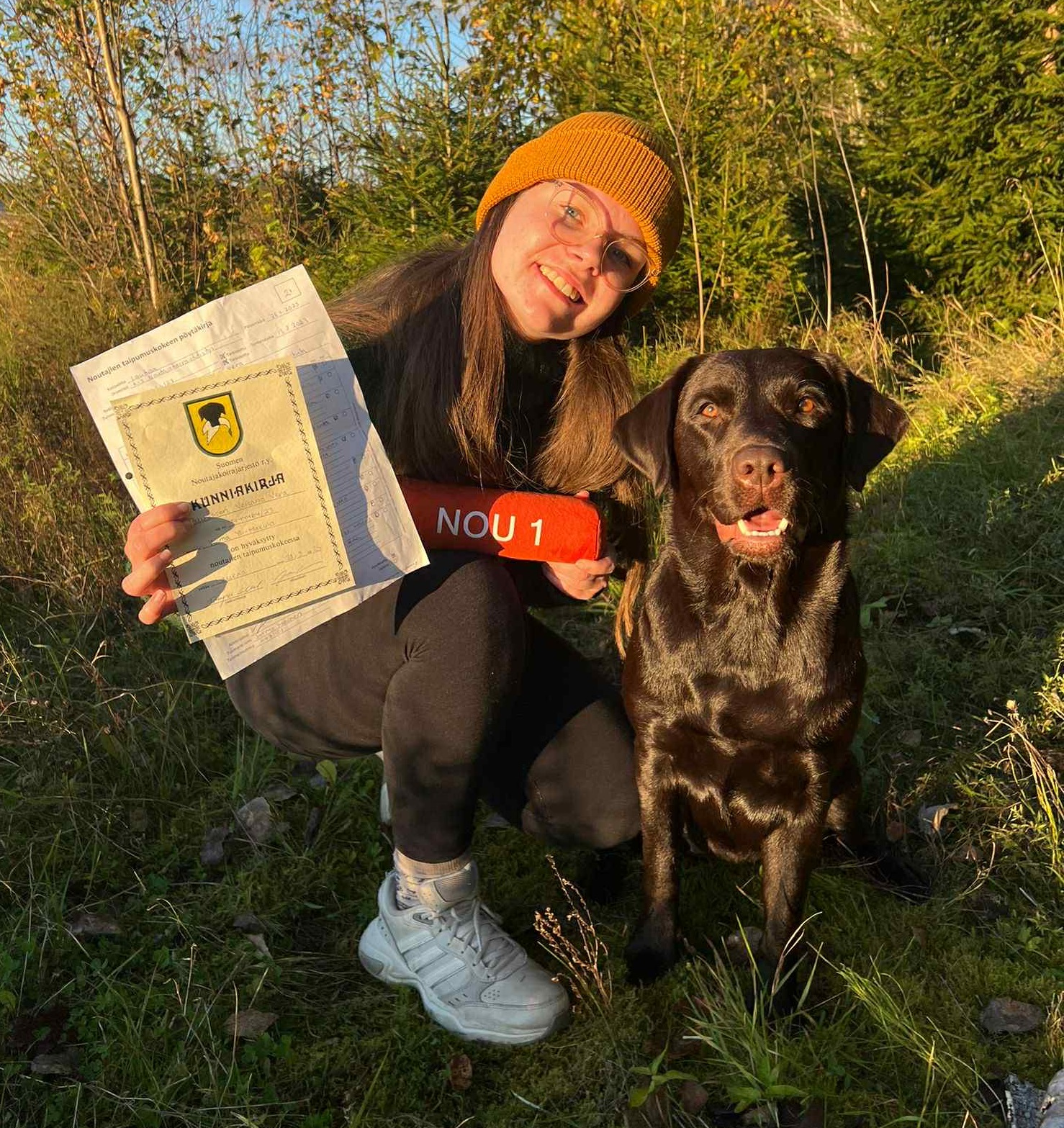 Wilma Yli-Hakulan labradorinnoutajanarttu Puustisen Volcano Vera suoritti 27. syyskuuta Laukaassa noutajien taipumuskokeen tuloksella NOU1.